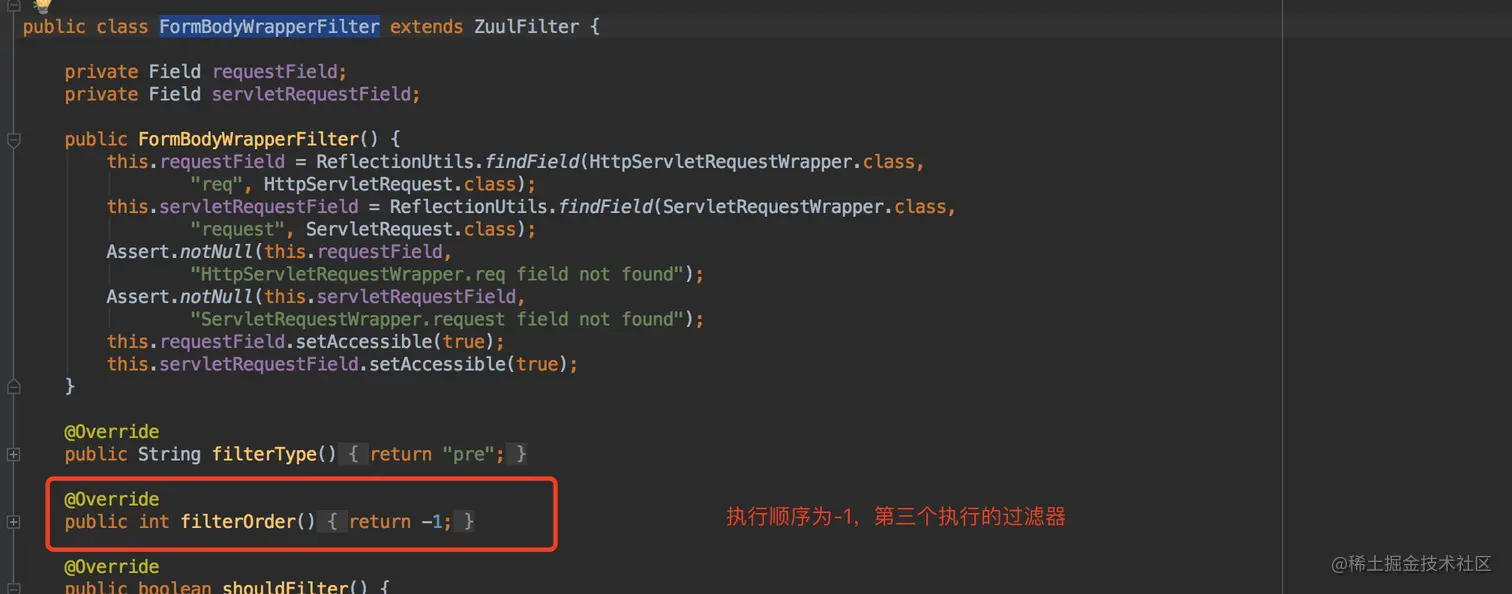 它的执行顺序为-1,是第三个执行的过滤器。该过滤器仅对两类请求生效,第一类是Context-Type为application/x-www-form-urlencoded的请求,第二类是Context-Type为multipart/form-data并且是由String的DispatcherServlet处理的请求(用到了ServletDetectionFilter的处理结果)。