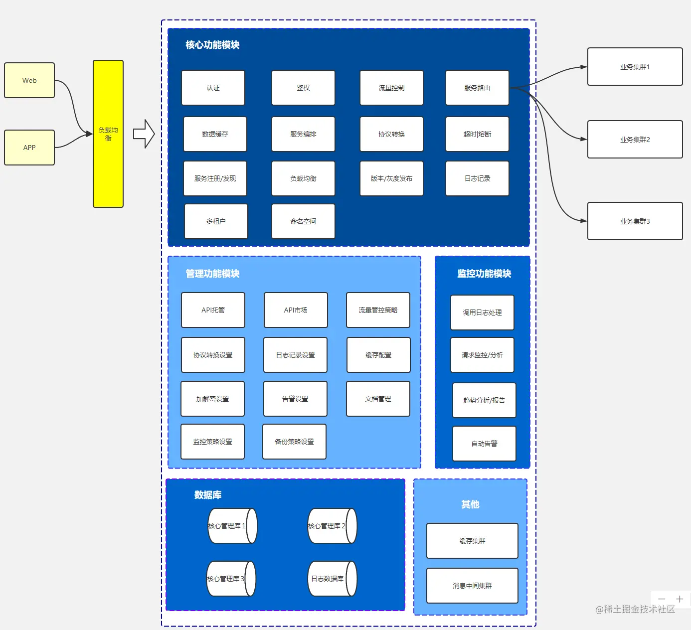 我们可以将网关看做成一组过滤器组成的集合,有一些与业务无关的公共逻辑可以抽象到网关中实现,如安全认证、限流熔断、日志监控,黑白名单,缓存,压力测试、灰度发布等。