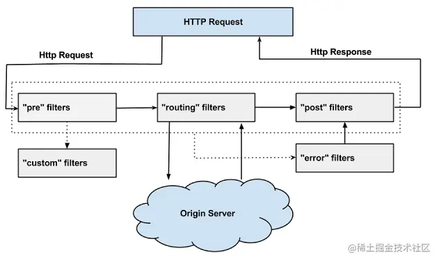 Zuul请求的生命周期如图所示,该图详细描述了各种类型的过滤器的执行顺序。
