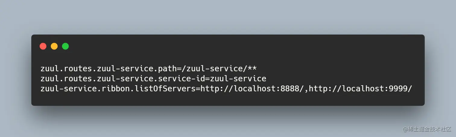 多实例的路由转发通过 zuul.routes..path 与 zuul.routes..service-id 参数对的方式进行配置,其中 service-id 是由用户手工命名的服务名称,配合 ribbon.listOfServers 参数实现服务与实例的维护: