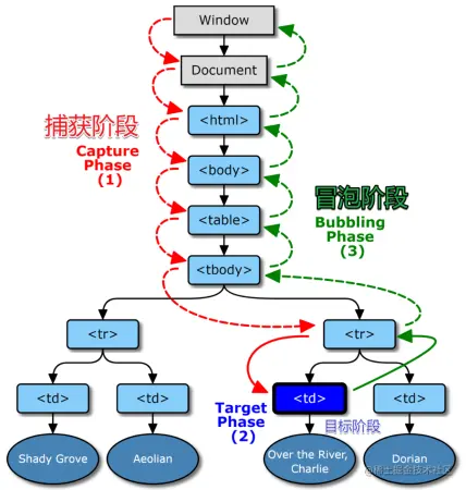 useCapture: 默认是false,代表事件句柄在冒泡阶段执行