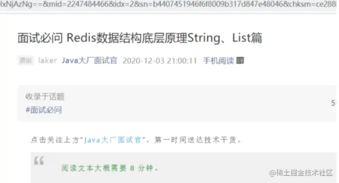 上面的url其实就是这篇文章的地址面试必问 Redis数据结构底层原理String、List篇
