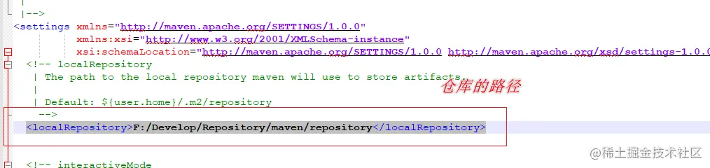 例子:<localRepository>F:/Develop/Repository/maven/repository</localRepository>