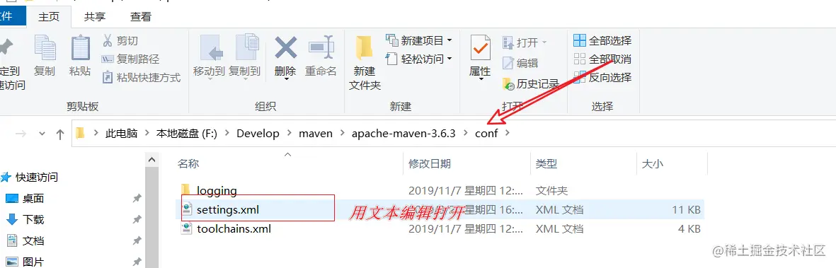 在进入apache-maven-3.6.3的conf文件中用文本编辑器打settings.xml。