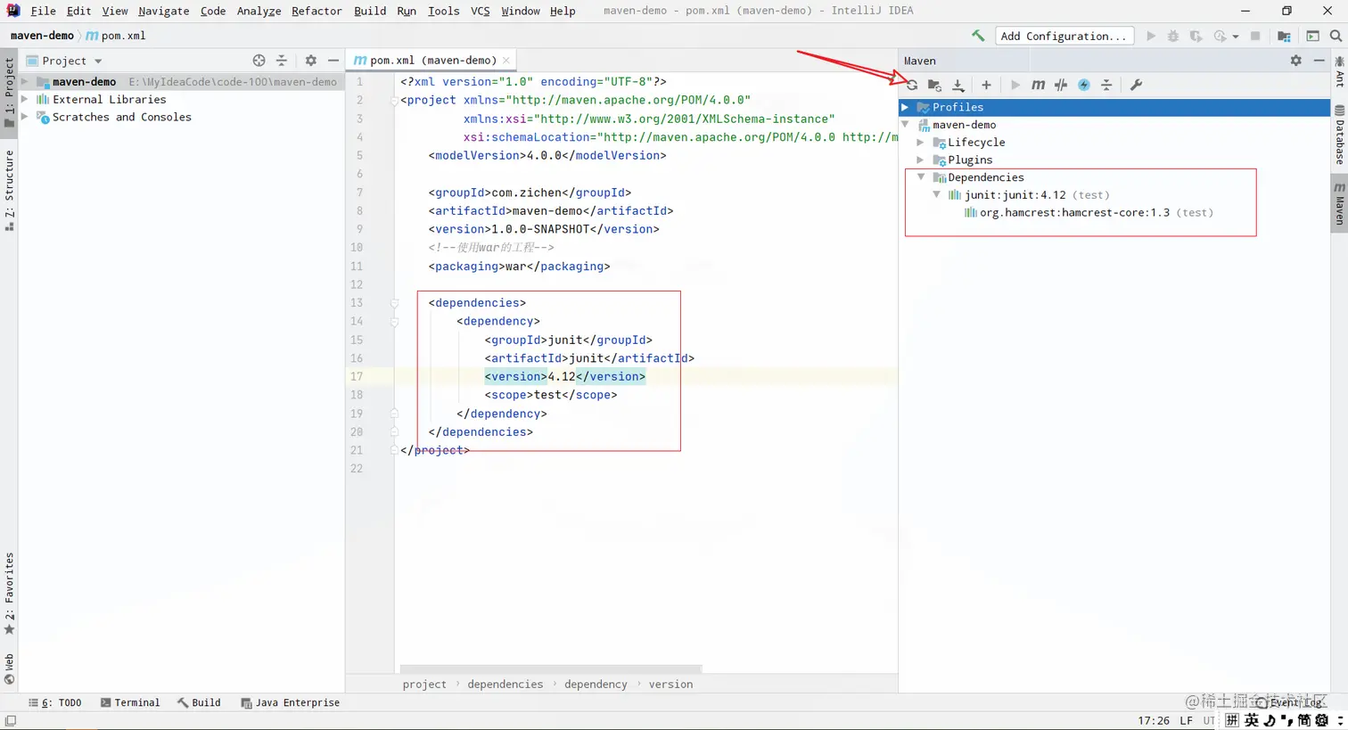 - 一个packaging为war且带有junit依赖声明的pom.xml