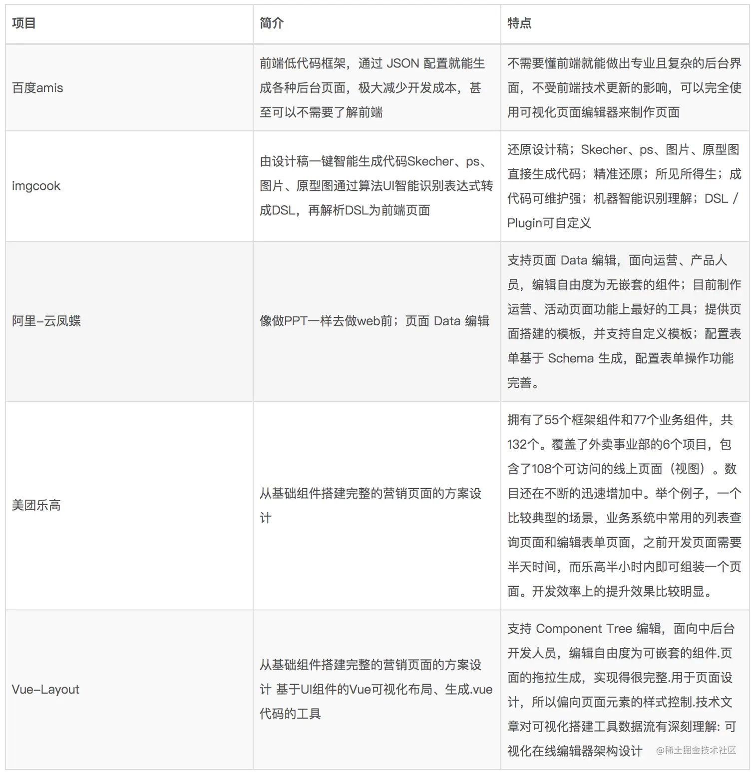 可视化开发一直是前端开发的热点话题,几乎所有大的公司都有自己的可视化配置平台,我们在建设可视化平台之前也做了充分的调研,下面以平台对比和总结的方式介绍。