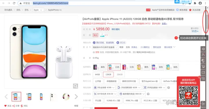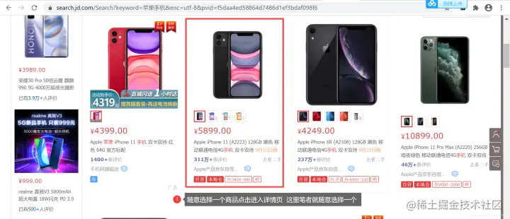 URL 是 苹果手机商品 。商品页面如下图所示:
