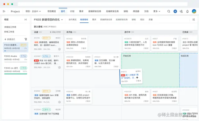通过**「敏捷看板」**可视化地呈现需求价值和价值流动过程,帮助团队了解项目进度的同时,及时发现项目问题和阻碍,提升端到端的交付能力。