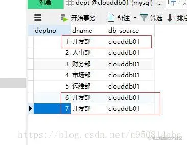 ☆根据dname分组,查找出deptno最小的。然后再查找deptno不包含刚才查出来的。这样就查询出了所有的重复数据(除了deptno最小的那行)
