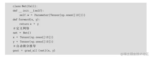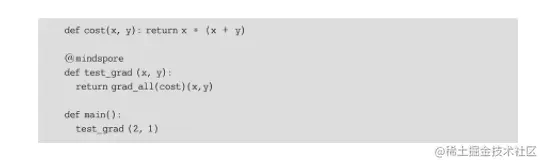 代码1.4 MindSpore手动调优自动微分代码示例