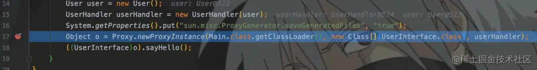 Object o = Proxy.newProxyInstance(Main.class.getClassLoader(), new Class[]{UserInterface.class}, userHandler);