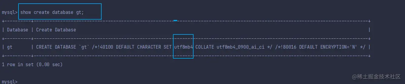 查看某个数据库的编码可以通过以下指令