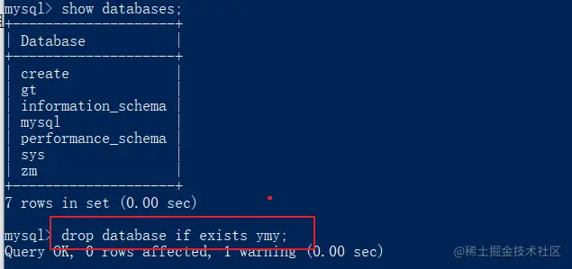 以上语句, 如果MySQL中没有要删除的数据库, 那么就会报错