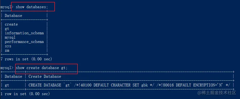 show create database 数据库名称;