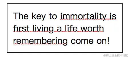 确实此方案为边框增加了很多可能性,比如我们可以去修改边框的颜色,宽度,以及线型,但是我们可以发现,这些“下划线”与文本之间的间隙太大了,甚至比字母的降部还要低,maybe我们可能需要一个更加完善的方法去实现下划线了~