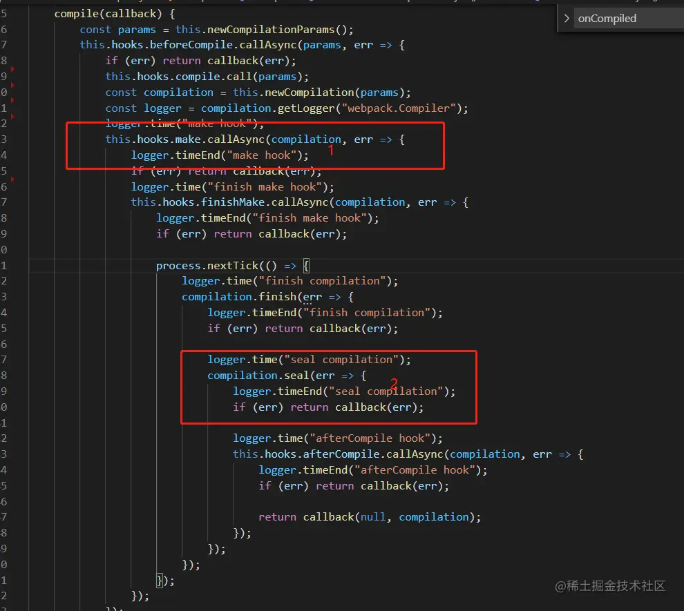 compile方法包含了构建的主要内容,在hooks.beforeCompile钩子执行完之后,compilation登场,这个对象是每次编译都会创建一个的,里面包含了这次编译的信息和一些打包输出的方法。