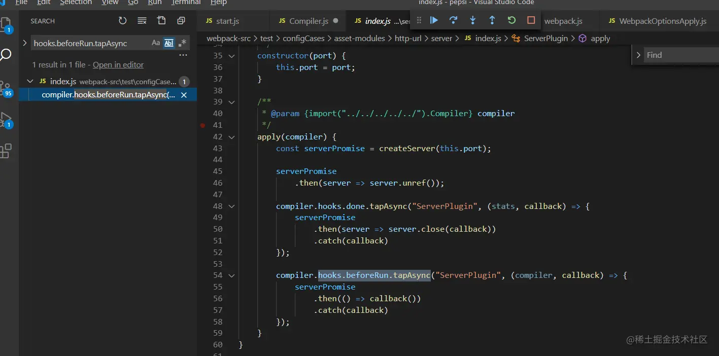 首先看到compiler实例在初始化的时候hooks属性上的beforeRun的值是初始化一个AsyncSeriesHook的实例,这个AsyncSeriesHook其实是tabaple类的一种实现,tapaple类是基于发布订阅模式,我们看到的this.hooks.beforeRun.callAsync()就是去执行它里面收集的一些方法。然后我通过搜索看看哪里把方法订阅上去发现了lib/index.js文件中。webpack事件流是基于tapable类,建议大家也去看下它的构造。