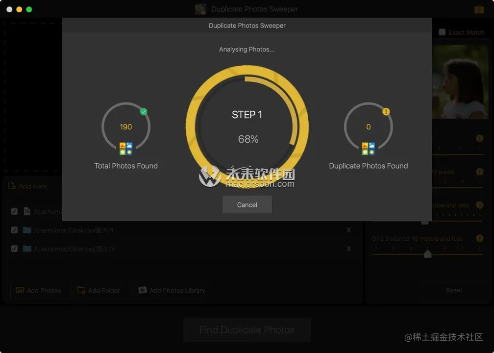 Duplicate Photos Sweeper Mac是一款非常简单易用的重复图片清理软件,这些重复的照片可能散落在您电脑的每一个角落,霸占着您的系统内存,Duplicate Photos Sweeper for Mac可以轻松地将其删除。Duplicate Photos Sweeper Mac版能够为您快速查找所选文件中可能重复的照片或图片,并且进行删除,释放您的磁盘空间。Duplicate Photos Sweeper Mac版支持JPEG,PNG,TIFF,GIF,RAW等流行图像格式!