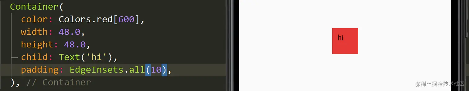 另外,如果你翻看 Container 的代码会发现,当 Container 接受到 padding 参数的时候,会构造出一个 Padding 部件。