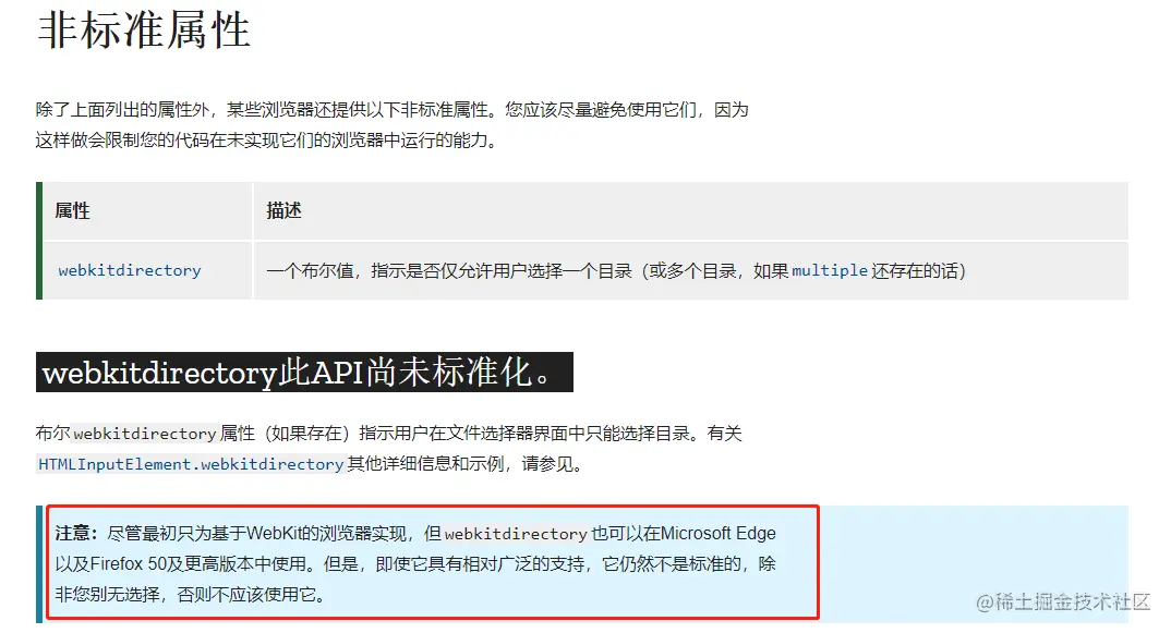实现文件夹的上传。But,查看相关Web API文档,webkitdirectory属性并不是所有浏览器都支持。只有Google、Edge、Firefox 50及更高版本中可以使用。