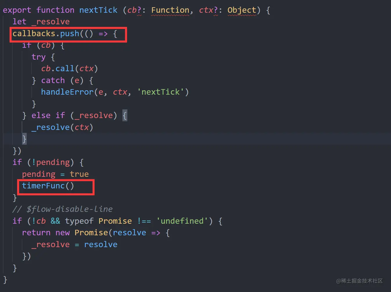 how:Vue将开启一个队列(callbacks),缓冲同一事件循环中发生的事件改变,用异步的timerFunc方法(Promise、MutationObserver、setImmediate、setTimeout)去调用,如果同一个watcher被多次触发,则只执行最后一次,从而避免对DOM的重复操作