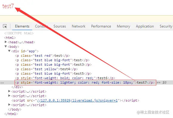 <p style="font-weight: bold" :style="{color: styleRedColor, fontSize: styleFontSize + 'px', 'font-weight': styleFontLighter}">test7</p>