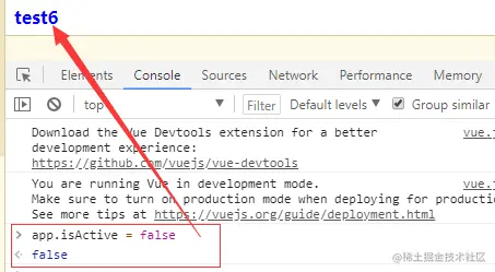 <p style="font-weight: bold" :style="isActive ? 'color: red' : 'color: blue'">test6</p>