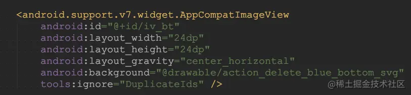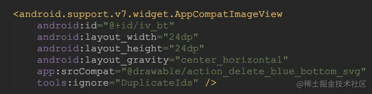 android.support.v7.widget.AppCompatImageView显示svg图,赋给了background,在5.0系统上没有问题,在4.4以下系统报错android.view.InflateException: Binary XML file line #270: Error inflating class <null> 改成srcCompat问题解决