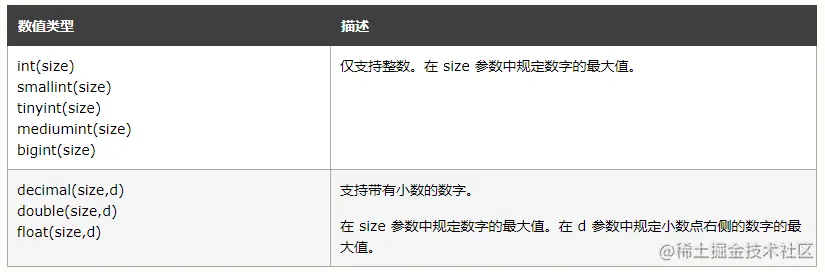 - CREATE TABLE 用于在 MySQL 中创建数据库表