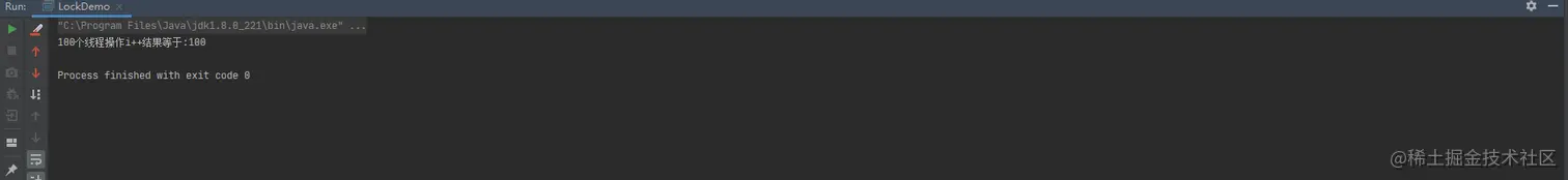 System.out.println("100个线程操作i++结果等于:" + i);