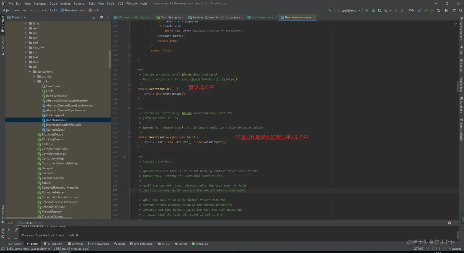 关于lock接口的api使用和锁的内部原理分析到这里就结束了