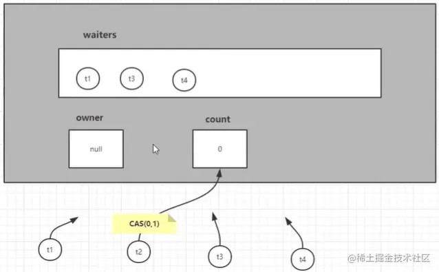 1.抢锁的线程先判断count值是否为0,为0则通过cas操作修改count的值.说白了就是count++操作.操作成功将owner改为自己否则进入等待池