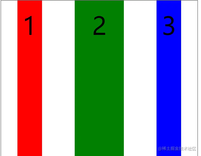 这里更改一下三个项目的width以更直观的看出justify-content的属性变化