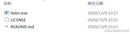 这里docker desktop帮我们搞定了k8s的环境,但是helm(k8s的包管理工具)还是需要自己装的,安装的方式很简单,直接去官网把包下下来就好了,下下来并且解压缩之后文件长这样: