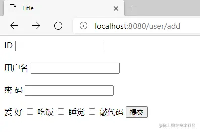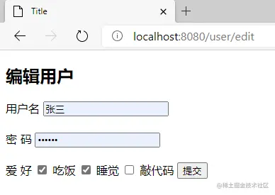 在浏览器输入 http://localhost:8080/user/getUser,可以看到:
