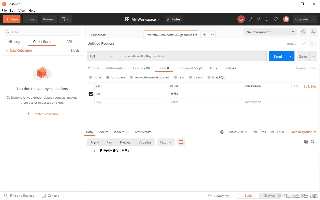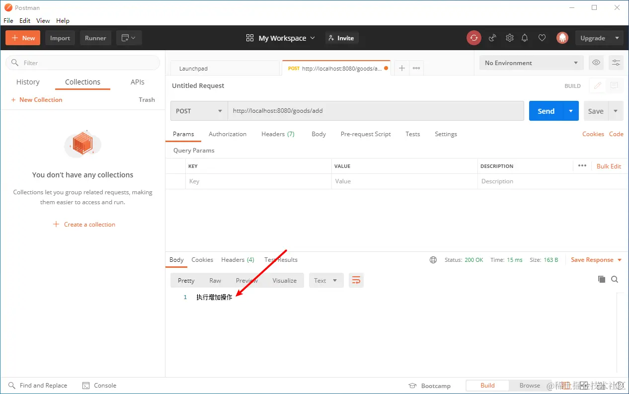 在 Postman 中在 Body 中输入 Key 和 Value,点击 Send,可以看到: