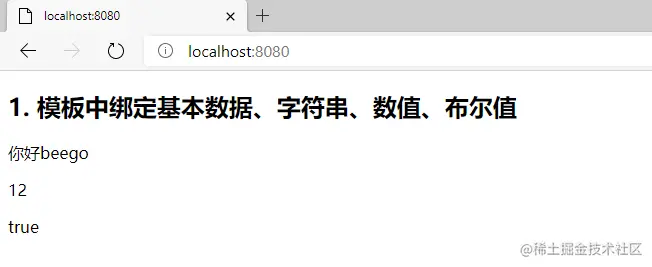 1. 模板中绑定基本数据、字符串、数值、布尔值