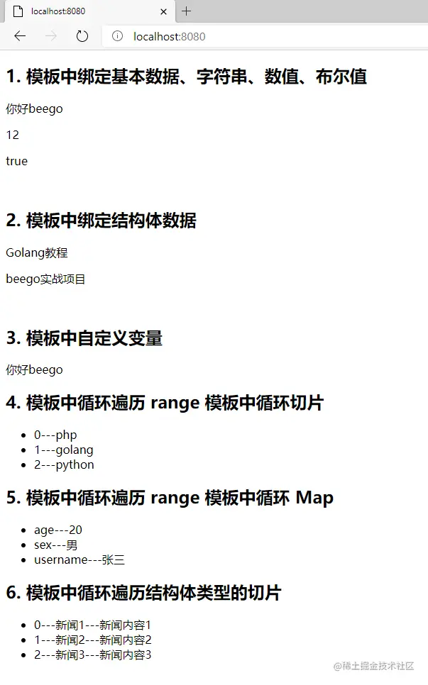 <h2>6. 模板中循环遍历结构体类型的切片</h2>