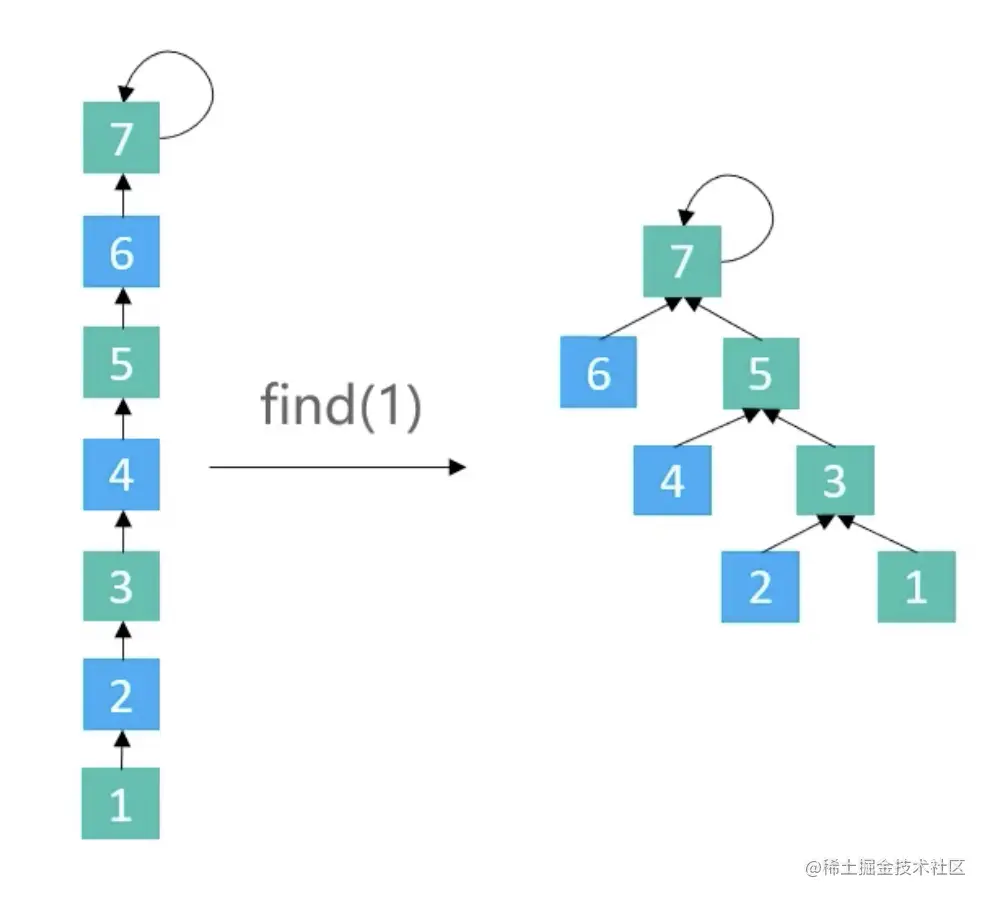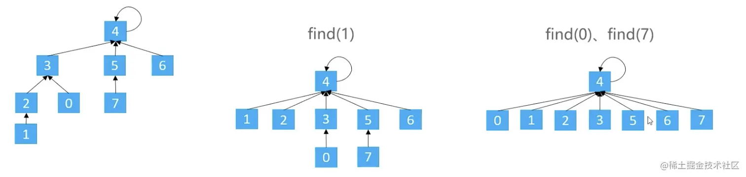 由于在执行find操作时,我们会遍历树上的一条路径。我们可以在此时进行优化--> 路径压缩