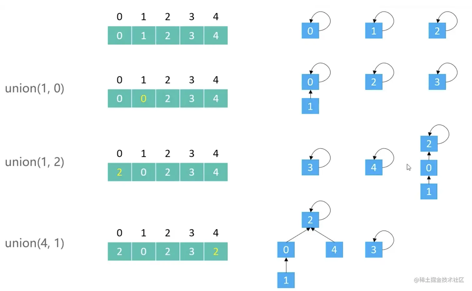 所以每个元素的初始父元素就是自己,每个元素单独为一组。