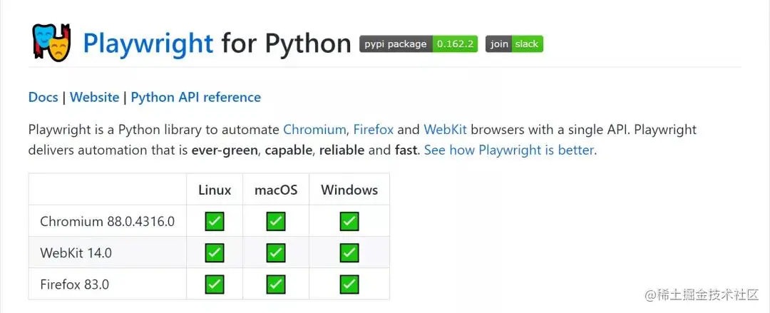 Playwright提供的自动化技术是绿色的、功能强大、可靠且快速,支持Linux、Mac以及Windows操作系统。
