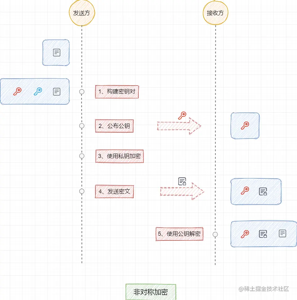 相对于对称加密算法,核心区别如下: