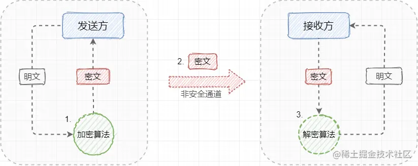 对称加密指的是 加密和解密使用相同密钥 的加密算法,这一类算法虽然在安全性上比不上非对称加密,却在加密 / 解密速度上占优。