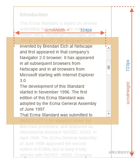 如果没有溢出时,这些属性与 clientWidth 和 clientHeight 是相等的。