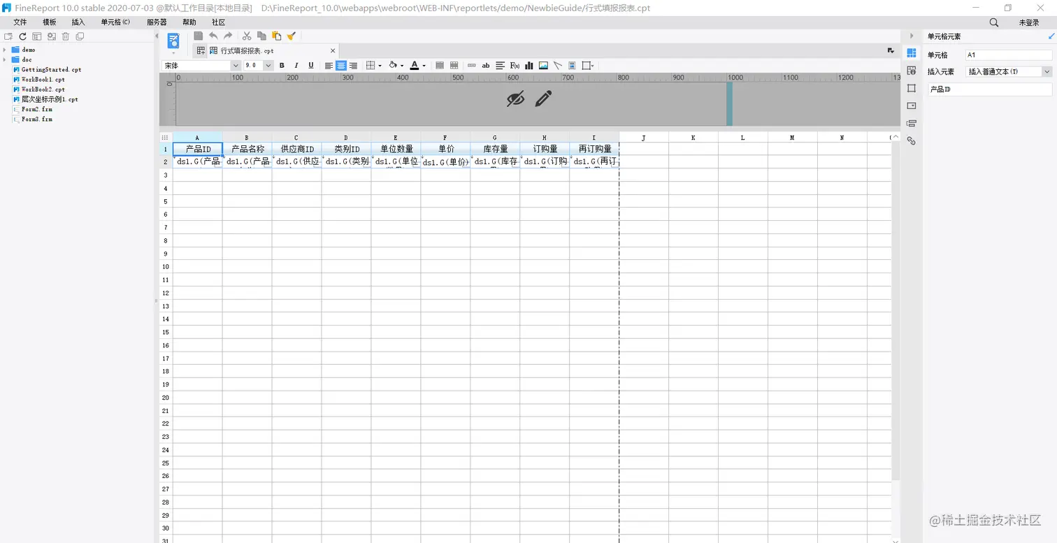 - 帆软只能下载离线版使用。比如帆软V10.0需要下载一个600M的设计器,采用类excel的设计模式,打开时间有20S,反复测试几次,基本都在20多秒。(测试电脑core I5 4核8G)。现在电脑的分辨率都比较高,finereport设计器的分辨率展示不是很理想。