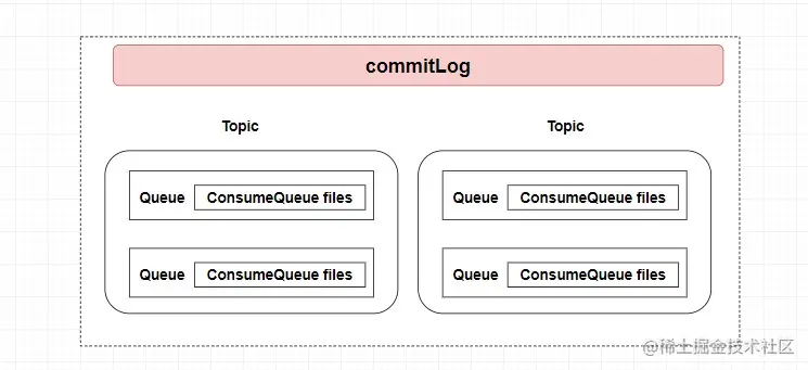 总结来说,整个消息存储的结构,最主要的就是 CommitLoq 和 ConsumeQueue 。而 ConsumeQueue 你可以大概理解为 Topic 中的队列。
