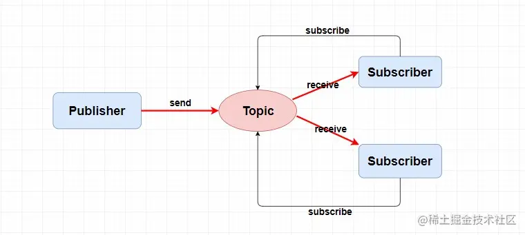其中,发布者将消息发送到指定主题中,订阅者需要 提前订阅主题 才能接受特定主题的消息。