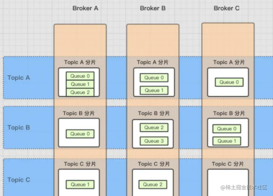 Broker、Topic和 队列的关系。上面我讲解了Topic和队列的关系——一个Topic中存在多个队列,那么这个Topic和队列存放在哪呢?一个