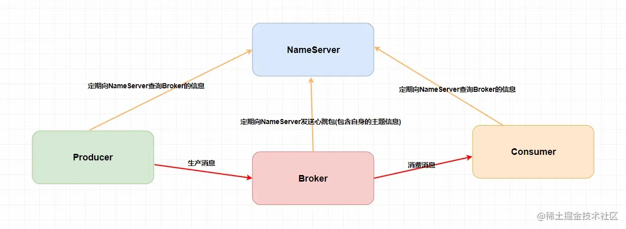 嗯?你可能会发现一个问题,这老家伙 NameServer 干啥用的,这不多余吗?直接 Producer 、Consumer 和 Broker 直接进行生产消息,消费消息不就好了么?