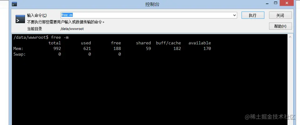 使用WinSCP的命令工具,输入下面的命名:free -m。